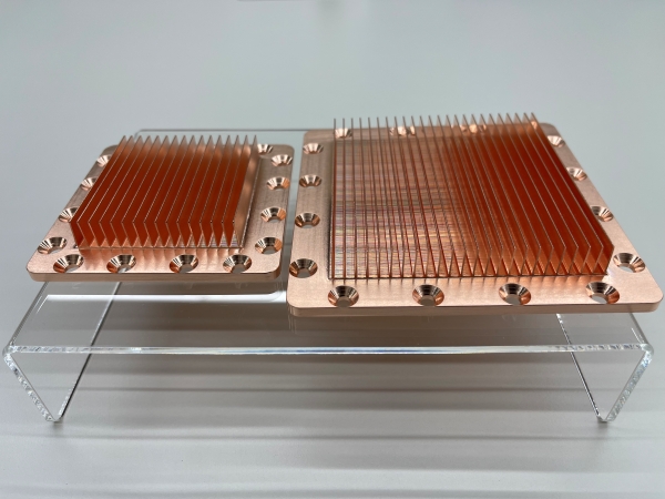 This is custom copper skiving heat sink plate for cooling high-power devices.